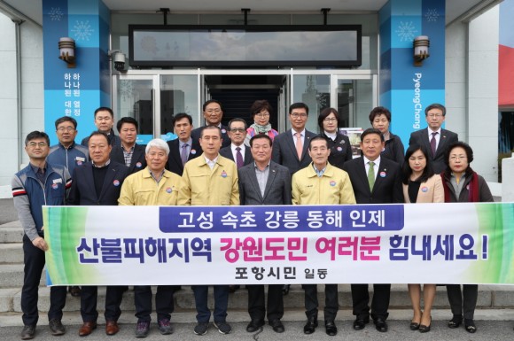 이번 방문은 포항시민들이 십시일반 모은 성금을 전달하기 위한 것으로, 기관․단체 등 관계자 30여명으로 구성된 대표단이 강원도청을 방문해 정만호 강원도 경제부지사를 만나 성금과 함께 위로의 말을 전했다.