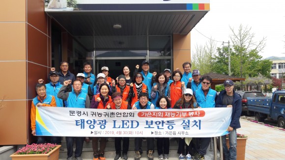 지난 4월 29일(월) 재능기부 활동 시작으로 가은지회(회장 서동석) 30여명은 가은읍 4개 마을 골목길에 태양광 LED등 설치 맞춤형 재능기부 활동을 실시하였다.