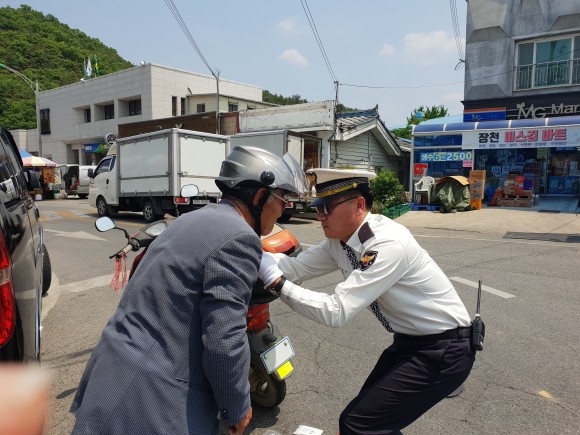 구미경찰, 이륜차 어르신 안전모 나눠드리며 장날파출소 운용 호응