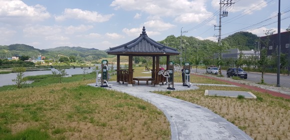 시는 신기제2산업단지 영강변 2,200㎡부지에 1,491㎡규모로 핑크뮬리 29,820본을 식재하고 산책로 조성과 함께 쉼터정자와 운동기구 등 편의시설의 설치를 지난 3월부터 시작하여 3개월의 공사기간을 거쳐서 완공했다.