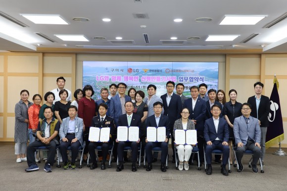 업무협약식에는 김영수 구미경찰서장, 장세용 구미시장, 김상철 LG경북협의회 부회장, 김휘연 금오종합사회복지 부관장, 신평 2동 이‧통장 등 총 30여명이 참석했다.