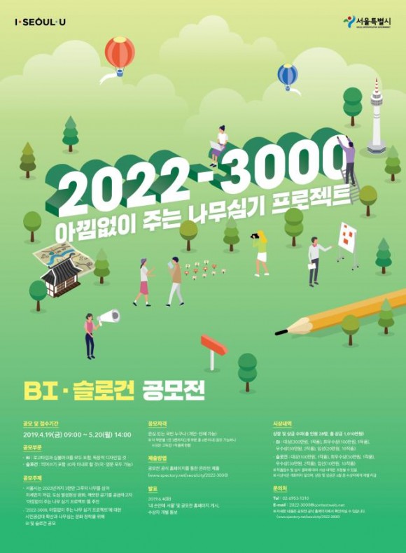 |  | | | ⓒ (주)영남도민일보 | | [영남도민일보] 이남희 기자 = 서울시가 6월 19일 「2022-3000, 아낌없이 주는 나무심기 프로젝트」 BI‧슬로건 시민공모 당선작을 발표했다.