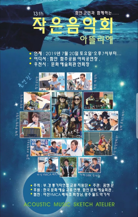 이번 음악회는 경남꿈앤꾼 예술단(단장 김도연)이 주관하고, 부산·경남 통기타 연합회 교류 지원단 ‘아뜰리에’가 주최하며, 한국문화예술교류연맹, 함안문화예술회관이 후원한다.