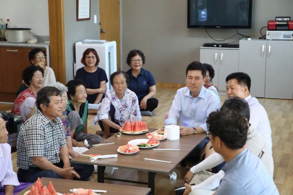 이강덕 포항시장은 지난 2일 폭염에 따른 피해 예방을 위해 남구 장기면 소재 경로당을 찾아 폭염에 취약한 어르신들의 생활환경을 확인하는 한편, 양포항방파제 보수보강공사 등 어촌뉴딜사업현장과 코스타밸리 복합 관광단지 조성 현장을 비롯한 각종 주요 사업장을 방문하여 사업추진 상황을 점검하고 관계자들을 격려했다.