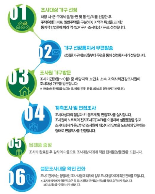 조사방법은 16일부터 보건소 소속 조사원이 선정된 가구를 직접 방문, 대상자를 만나 전자조사표를 이용해 1:1 면접조사를 실시한다.