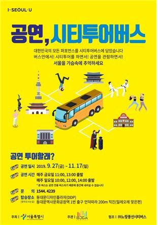 서울시는 오는 9월 25일(수)부터 11월 17일(일)까지 총 8주간, 서울시티투어버스 운영업체 (㈜서울시티투어버스, ㈜노랑풍선시티버스)의 일부 노선에서 국내외 버스 탑승객을 대상으로 서울의 콘텐츠를 활용한 특별한 공연을 진행한다고 밝혔다.