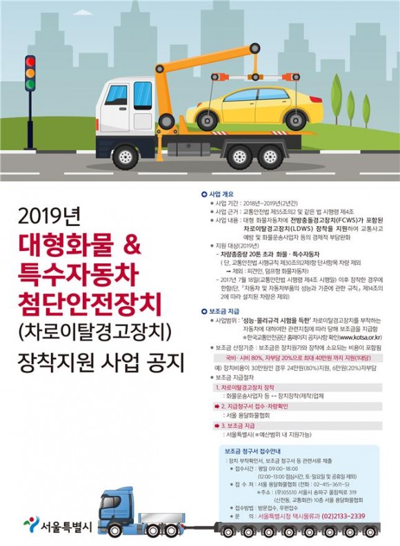 황보연 서울시 도시교통실장은 “2019년도까지 차로이탈경고장치 장착을 지원, 졸음운전 등 교통사고 발생을 미연에 방지하여 서울 시민의 교통안전 확보에 한층 기여할 것” 이라고 말했다.