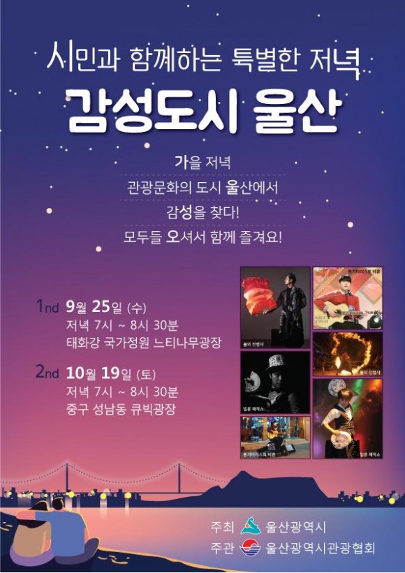 시민들과 울산을 찾는 관광객들에게 가을밤의 정취를 느낄 수 있는 공연이 되기를 기대한다. 앞으로도 다양한 문화관광 프로그램을 개발에 최선을 다해 나갈 것.”이라고 말했다.