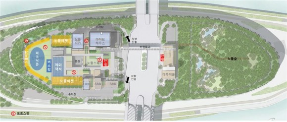 이번에 음악섬으로 재탄생한 ‘노들섬’은 음악 복합문화공간(연면적 9,747㎡)과 잔디밭 ‘노들마당’(약 3,000㎡)으로 이루어져 있다. 복합문화공간에는 ▴라이브하우스(대중음악 전문 공연장) ▴노들서가(서점 겸 도서관) ▴엔테이블(음식문화공간) ▴식물도(島)(식물공방) 등의 시설이 마련되어 있다.