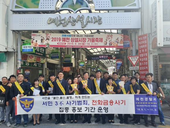 |  | | | ⓒ (주)영남도민일보 | | [영남도민일보] 김재근 기자 = 예천경찰서(서장 박재석)는 9월 27일 오전 10시 장날을 맞이하여 예천 상설시장에서 경찰서와 예천군 8개 금융기관 합동으로 전화금융사기예방 홍보를 위한 길거리 캠페인을 개최하였다.