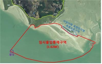 바람아래 해변은 무분별한 야간 해루질 증가로 인명 안전사고 증가와 함께 인근 양식장 피해로 주민 생계마저 위협받는 상황에서 지난해 임시출입통제구역으로 설정돼 야간 8시부터 다음날 아침 8시까지 일절 출입이 금지된 곳이다. 바람아래 해변에는 출입통제구역지정 안내판을 비롯해 야간경계조명, CCTV감시카메라 및 대형 안내확성기 등이 설치돼 반복적인 안내방송이 이뤄지고 있고 태안해안국립공원사무소와 태안해경 등 관계기관의 단속과 계도활동도 지속적으로 강화되고 있다.