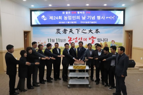 |  | | | ↑↑ 농자천하지대본”농업인의 날 기념행사 가져(시루떡절단) | | ⓒ (주)영남도민일보 | | [영남도민일보] 김옥순 기자 = 구미시농업기술센터(소장 주대현)에서는 제24회 농업인의 날을 맞아 11월 12일 미래농업교육관에서 김상철 부시장, 김봉교 도의회 부의장, 강승수 의회운영위원장, 양진오 산업건설위원장을 비롯한 시의원, 농업관련단체, 농업인, 유관기관장 등 160여명이 참석한 가운데 기념행사를 가졌다.