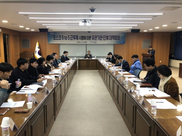 |  | | | ↑↑ 포스코 8 to 5 근무제 시행에 따른 유관기관 및 단체 점검회의 개최 | | ⓒ (주)영남도민일보 | | [영남도민일보] 홍인환 기자 = 포항시는 14일 시청 소회의실에서 포스코 8 to 5 근무제 시행에 따른 유관기관 및 단체 점검회의를 개최했다.