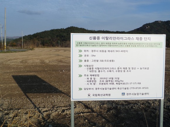 경주시 신품종 사료작물 품종별 비교 전시포장 조성