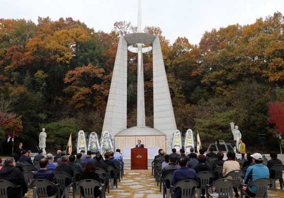 |  | | | ↑↑ 제80회 순국선열의 날 기념식 | | ⓒ (주)영남도민일보 | | [영남도민일보] 영남도민일보 기자 = 제80회 순국선열의 날’을 맞아 군북3·1독립운동기념사업회(회장 박기학)가 주관한 기념식이 17일 오전 11시 30분, 군북3·1독립운동기념탑 앞에서 열렸다.