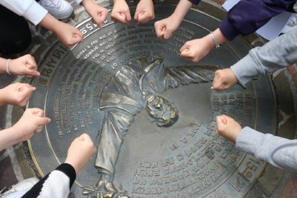 가온누리들은 2019.5.1. 아침부터 저녁까지 마산 지역의 골목을 샅샅이 살펴 이야기를 정리하고, 이 학습을 기초로 40여명의 후배들에게 3.15의거 길을 안내하면서 해설2019.5.18.)하고, 자신감을 키워 부산금명여고 언니들을 대상으로 3.15 의거 길을 안내하고 해설(2019.6.1.)하면서 지역사랑의 깊이를 더하였습니다.