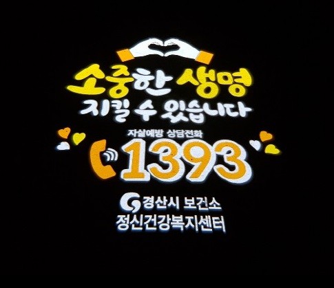 이번 로고젝터는 유동 인구가 많은 남매지와 남천 강변 산책로에 설치하여 경산 내 생명존중 분위기를 조성하고 생명사랑 홍보와 안전한 생명지킴이 역할을 할 것으로 기대된다.