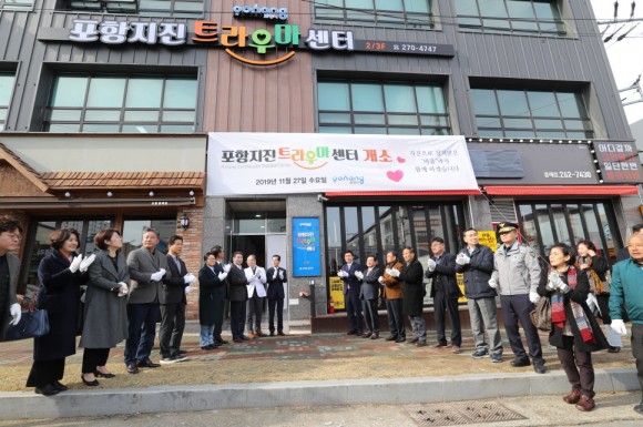 |  | | | ⓒ (주)영남도민일보 | | [영남도민일보] 홍인환 기자 = 포항시는 지진 발생 2년을 맞아 27일, 흥해읍 신시가지에서 마음치유를 위한 포항지진 트라우마센터를 문 열고 개소식을 가졌다.