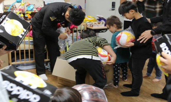 |  | | | ↑↑ 7일 오전 지역 아동복지설을 찾은 태안해경이 체육용품을 아이들에게 나눠주고 있다. (사진: 태안행양경찰서 제공) | | ⓒ (주)영남도민일보 | | [영남도민일보] 영남도민일보 기자 = 안전하고 깨끗한 바다를 목표로 국민의 안전만을 향해 달려 온 태안 해양경찰서(서장 김환경)가 추운 겨울 년말을 맞아 7일 오전 지역 아동 복지시설을 찾아서 온정의 소통 행보를 이어갔다. 이 날 오전 관내 아동복지 시설인 ‘희망터전 봄언덕’을 찾은 태안해경은 지난 달 28일 ‘2019 생명존중대상 10인'에 선정된 지성준 경장이 함께 해 송옥희 원장에게 온정의 금일봉과 체육용품을 전달하고 정담을 나눴다.