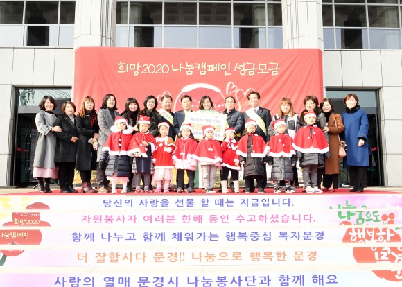 고윤환 문경시장은 “올해 지역경기가 어려우나, 여러 사람이 모이면 오늘과 같이 큰 희망이 될 수 있을 것”이라며 “희망을 나눠 어려운 이웃과 함께 나누는 따뜻한 겨울이 되었으면 좋겠다. 희망2020나눔캠페인에 많은 시민 어려분들의 참여를 부탁드린다.”고 말했다.