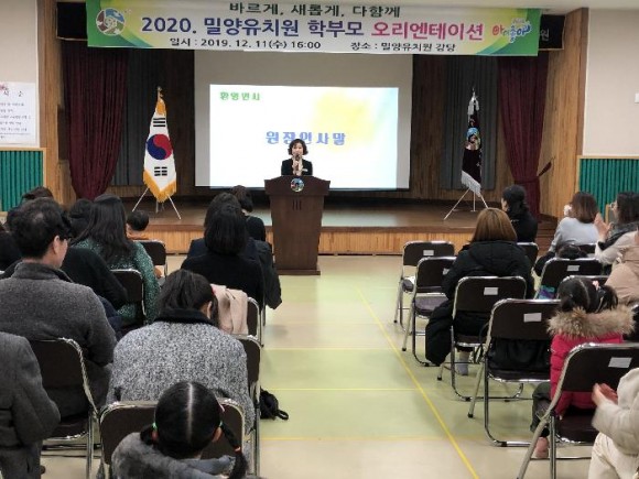 |  | | | ↑↑ 바르게! 새롭게! 다함께! 밀양유치원 입학을 환영합니다. | | ⓒ (주)영남도민일보 | | [영남도민일보] 영남도민일보 기자 = 밀양유치원(원장 이외자)은 12월 11일 오후 4시부터 2020학년도 신입 유아 및 재원 유아 학부모를 대상으로 신입생 오리엔테이션을 개최했다.