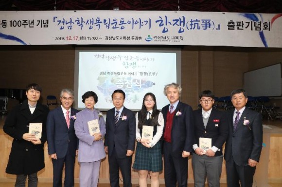 지난 4월 경남의 역사교사들을 중심으로 「경남학생독립운동이야기 항쟁(抗爭)」 발간 TF팀을 구성하고 18개 시·군별 편찬위원을 선정하여 각 지역의 학생독립운동사를 발굴하였으며 경상남도의 지원으로 인쇄되었다.