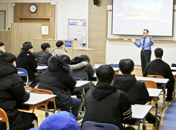 만리포고등학교의 직업교육 일환으로 현직 해양경찰관을 초청해 이뤄진 이날 진로특강은 1학년 30명, 2학년 41명에 대해 오후 2시 40분부터 각각 50분씩 진행됐다.