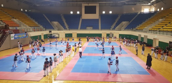 |  | | | ↑↑ 2020년 전국 중학교 태권도 연합팀 동계 합동전지훈련 실시 | | ⓒ (주)영남도민일보 | | [영남도민일보] 김재근 기자 = 미래의 대한민국 태권도 주역이 될 전국 중학교 태권도부 선수단 215명이 스포츠·전지훈련의 메카 문경시(시장 고윤환)에 소재한 국군체육부대에서 동계 합동전지훈련에 들어갔다.