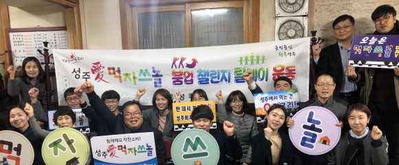 이에 총무과는 먹․자․쓰․놀 붐업 챌린지 릴레이 운동의 첫 주자로 나서, 전 직원이 관내 식당에 모여 먹․자․쓰․놀 운동 활성화를 위한 방법을 모색하고, 공직자로서 사명감을 갖고 먹․자․쓰․놀 운동에 적극 참여할 것을 다짐하였으며, 다음 실천 주자로 월항면, 성주 일반산업단지관리공단을 각각 SNS를 통해 지목하였다.