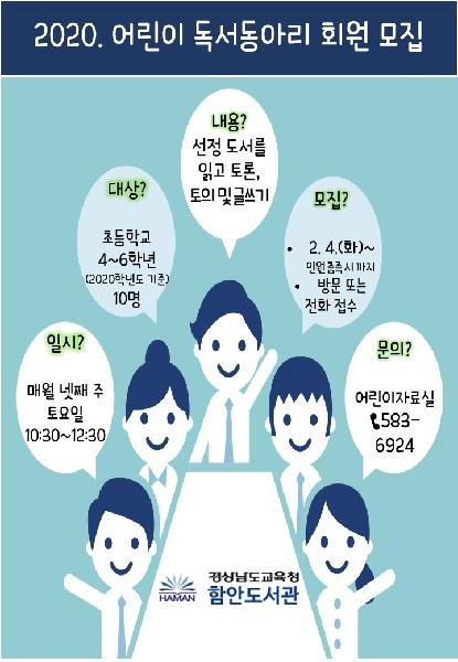 함안도서관, 어린이 및 청소년 독서동아리 회원 모집