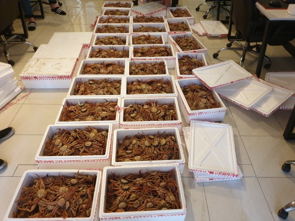 특히, 지난 1월 17일에 경북 포항시 죽도동 소재 PC방에서 일명 “빵게”로 불리는 암컷대게 1,200여 마리를 숨겨놓고 내다 팔려한 2명을 현행범으로 체포 구속하였는데 최근 이러한 암컷대게(일명:빵게)·체장미달 대게(어린대게)의 불법포획 및 유통은 야간·새벽·공휴일 등 취약시간 대 은밀한 장소에서 분업화·조직적으로 유통·판매되고 있는 것으로 확인 되었다.