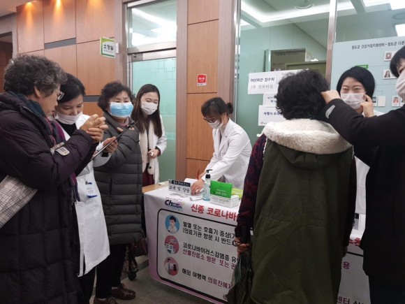 지난 12일 보건소에서는 문화체육시설사업소 프로그램 신청자 200여명 및 다중이용시설인 청도역을 방문하여 방문객을 대상으로 체온측정, 마스크 제공 및 호흡기 감염 예방 홍보물을 배부하고, 군민들에게 철저한 ‘개인위생수칙’,‘손씻기 시연’ 등 교육 및 홍보 캠페인을 실시하였다.
