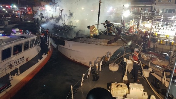 이날 발생한 화재는 선박 A호에서 화재가 발생하여 주변 선박 3척으로 옮겨붙어 5시 40분경 완전진압하였고, A호의 침몰방지를 위해 배수펌프를 이용하여 배수하고 있다고 밝혔다.