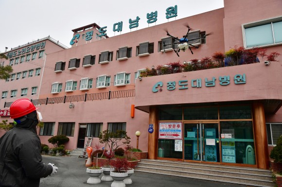 |  | | | ⓒ (주)영남도민일보 | | [영남도민일보] 영남도민일보 기자 = 청도드론협회(대표 김용규)는 코로나19 확산방지를 위하여 2월 27일(목) 대남병원 외 2개 병원에 드론을 이용하여 소독을 실시하였다.