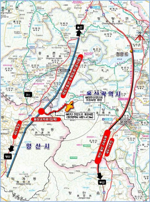 이번에 개설되는 도로는 울주군도 33호선 구간 내 온양읍 내광리~양산시 용당동까지 2.5km 구간이다.