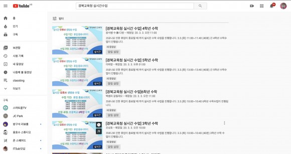 유튜브 온라인 교실에는 초등 전 학년을 대상으로 학년별 국어, 수학, 영어 수업 등 영상을 탑재하고, 초등 3~6학년에게는 학년별 실시간으로 수학 수업 동영상을 제공한다.