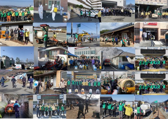 212개 마을에서는 이장, 새마을4단체, 의용소방대, 청년회 등 주민이 참여하는 마을자체방역단을 구성하여 경로당, 주택, 골목 등 마을 곳곳에 매주 2차례씩 소독에 나서고 있다.
