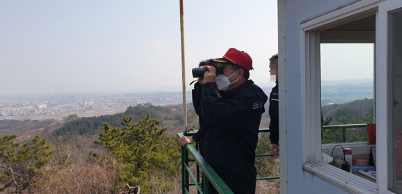 포항시 정영화 환경녹지국장은 19일 산불감시탑을 직접 찾아 산불감시원들에게 “산불경계태세를 늦추지 말고, 산불이 발생 시 신속한 보고를 통해 반드시 초동진화가 이루어질 수 있도록 산불감시에 전력을 다 할 것”을 강조하며 “시민들께서도 산불방지를 위해 적극적으로 협조를 해주시길 당부드린다.”라고 말했다.