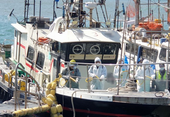 신진, 안흥항 정박 여객선, 낚시배 등 40여 척 방역소독 전격 실시