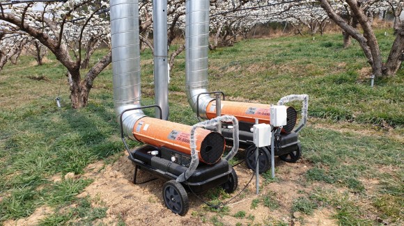 최근 기온이 영하로 떨어져 많은 과수 농가가 피해를 봤지만 이를 막기 위해 열풍방상팬을 설치한 농가는 피해가 미미했다.