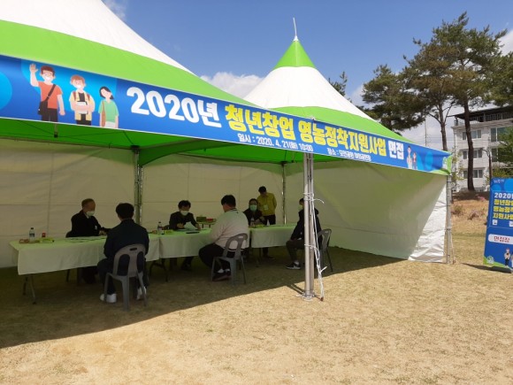 |  | | | ⓒ (주)영남도민일보 | | [영남도민일보] 김재근 기자 = 문경시는 지난 21일 코로나19 예방을 위한 사회적 거리두기 일환으로 문경시 모전공원 야외 공연장에서 서류 심사를 통과한 18명의 청년농업인들을 대상으로 「2020년 청년창업농 영농 정착 지원사업」면접평가를 실시했다.