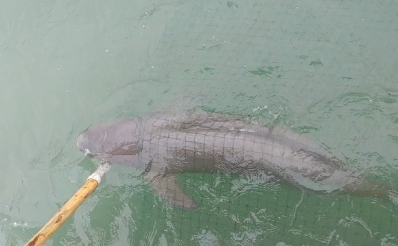 어망에 갇힌 어린 ‘상괭이’어민손에 구조돼 바다로 돌려 보내져