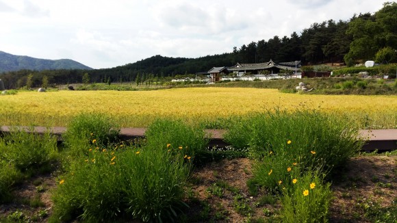 초록빛에서 시작한 청보리밭은 현재 봄볕 아래 한창 익어가는 중이라 5월 중순을 넘어서면서 황금물결이 출렁이는 또 다른 풍경을 만들어내고 있다.