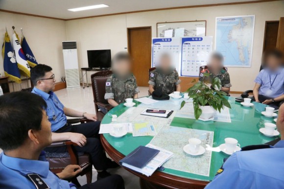 지난 8일 오전 태안해경서를 찾은 32사단 충절연대장 및 예하 태안 대대장 등 육군 관계자 5명과 함께 해안경계 강화를 위한 군·경 협조 사항을 논의한 자리에서 레이더 사각지역 감시 장비인 ‘열상감시장비(TOD : Thermal Observation Device)’ 등 군의 경계감시 자산을 활용한 해상 접촉물 정보교환 과 통합방위 작전을 위한 상호 지원방안 등에 관해 상호 의견을 나누고 구체적인 보완대책 마련을 위한 실무협의를 지속하기로 했다.