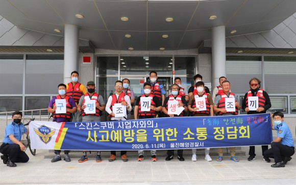 |  | | | ⓒ (주)영남도민일보 | | [영남도민일보] 영남도민일보 기자 = 울진해양경찰서(서장 최시영)는 11일 관내 스킨스쿠버 사업자 18명과 연안사고 예방을 위한 소통 정담회를 개최했다고 밝혔다.