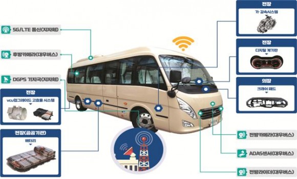 지난 5월 말 국토교통부로부터 임시 운행허가를 취득한 이 차량은 울산시가 주체가 되고 울산테크노파크가 주관해 에이투지, 케이에이알, 자일대우상용차 등 지역 기업체와 공동으로 개발한 울산 1호 자율주행 셔틀버스이다.