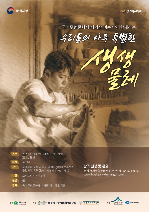 2020년 문경 ‘생생문화재사업’은 ‘문경새재에서 사기장(沙器匠)의 길을 걷다’라는 사업의 제목을 걸고 알차며 뜻깊은 다양한 프로그램들을 진행한다.