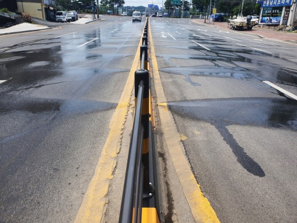 이 시스템은 지하수를 이용해 도로 중앙선에 설치된 살수 노즐을 통해 물을 분사하는 방식으로 자동제어 및 원격으로 운영할 수 있어 폭염 및 강설 시 초기대응에 효과가 매우 크다.