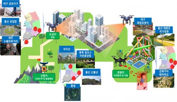 또한 울산과학기술원(UNIST) 환경감시 자율무인시스템 연구센터와 자율 무인시스템 기반의 스마트 환경 모니터링 기술 개발에 착수하고 내년에는 도시 방범, 해상감시, 산불 감시 등을 접목한 ‘드론 실증도시 구축사업’과 ‘물류용 배달 드론 시스템 고도화 사업’도 추진할 계획이다.