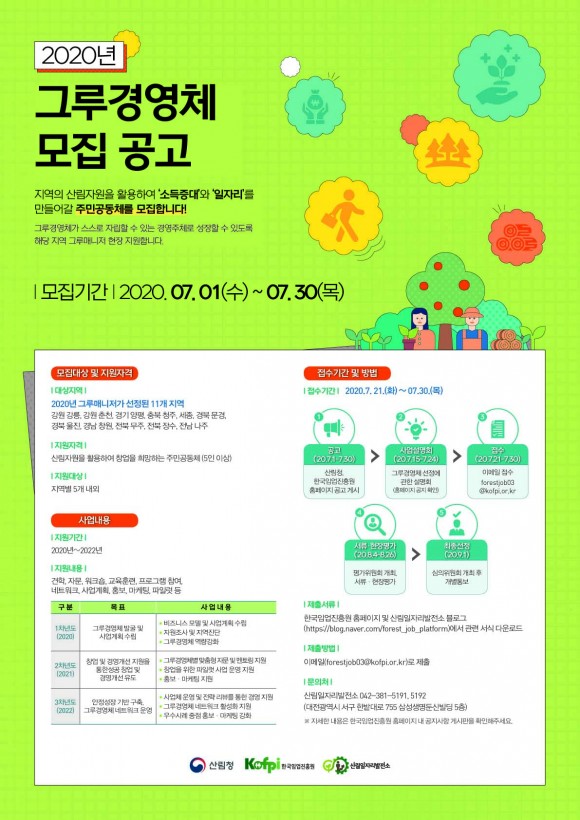 한국임업진흥원, 2020년도 산림일자리발전소 그루경영체 모집
